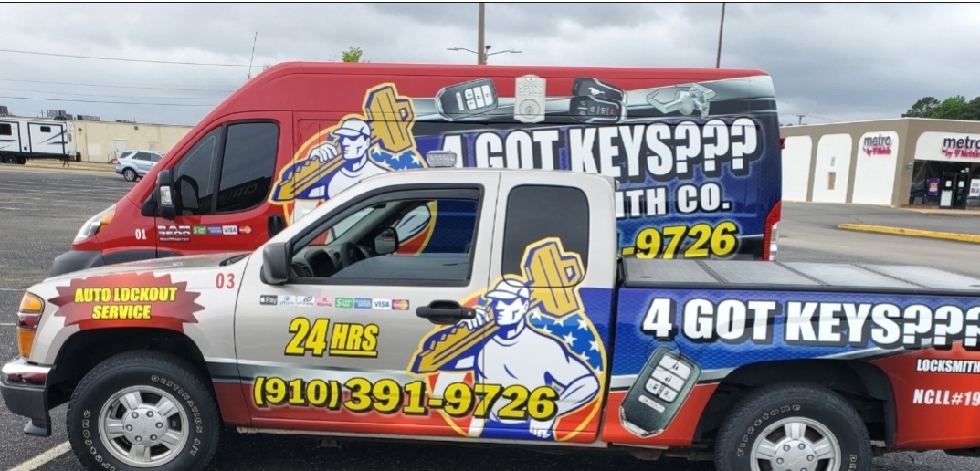 When you require the assistance of a locksmith, reach out to 4 Got Keys??? at 910-391-9726 without hesitation. Our dedicated team is ready to promptly and efficiently address your needs in the Dunn, NC area.